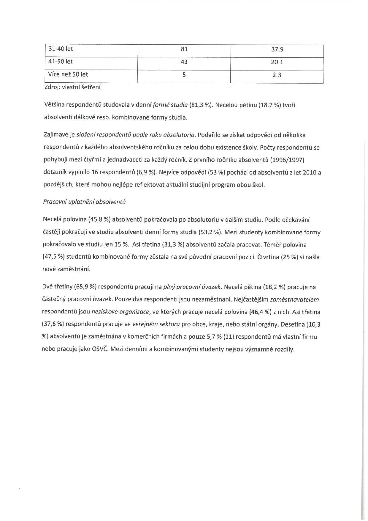Výsledky průzkumu absolventů VOŠ Jabok a PSP ETF UK